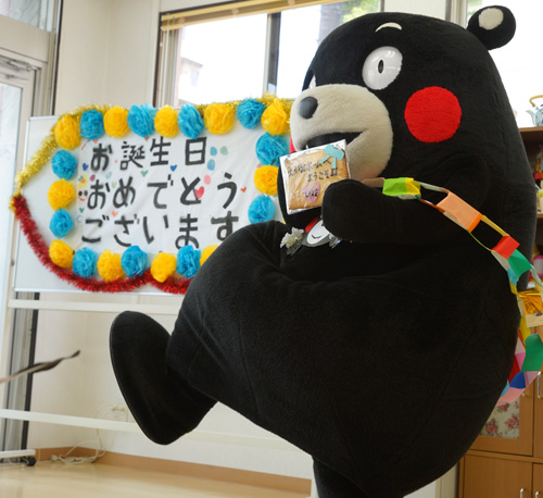 デイサービスにくまモン隊がやって来ました。利用者の方々と『くまモン体操』や『写真撮影』をしました♪楽しく過ごしました(^^) また来るモン