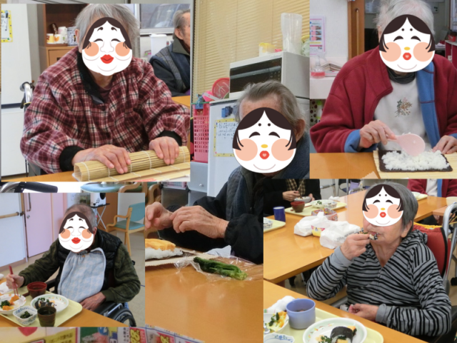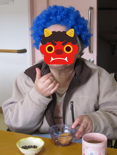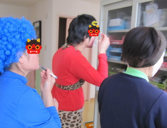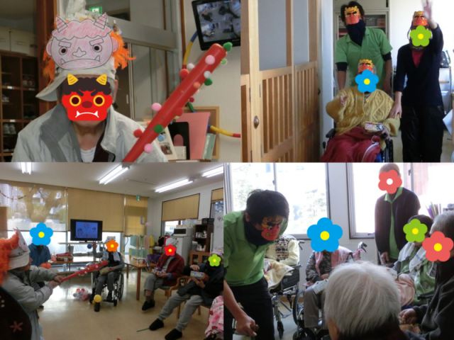 各部署で節分をしました。利用者様は豆をまくよりも…食べるのに必死になっておりました(^_^;)