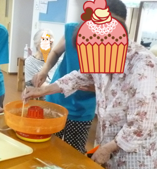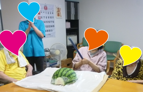 利用者さんが熱中症にならない様に水分補給をいつも以上に心がけ飲んでもらっています。