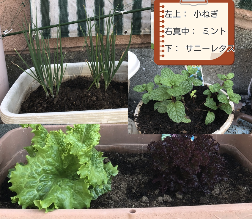 小ねぎ・ブロッコリー・サラダ菜・パセリ・ミント・サニーレタスを植えました。