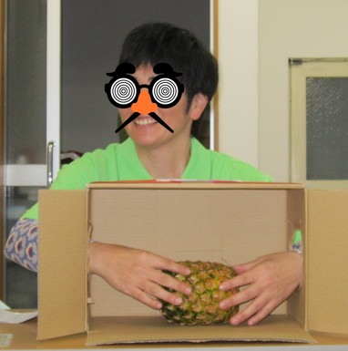 こちらの箱の中身は『パイナップル』他にも、タコ・糸こんにゃく・イチゴ大福etc… 利用者様、最初は答えを教えてあげたりしてましたが、中盤からはヒントを言ったり、「噛みつくよ!」「うわぁ~。こりゃいかん!」とオーバーリアクションしてくださり、大声で騒ぎました。